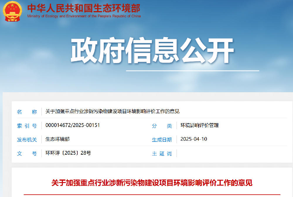 近日,生态环境部印发《关于加强重点行业涉新污染物建设项目环境影响评价工作的意见》。首次系统规范重点行业建设项目环评工作中新污染物的环境管理要求。