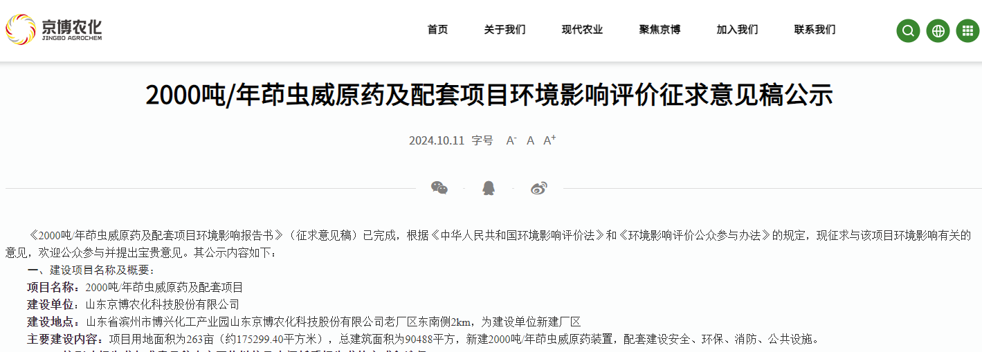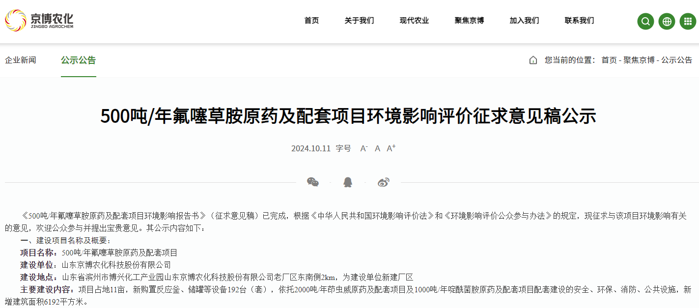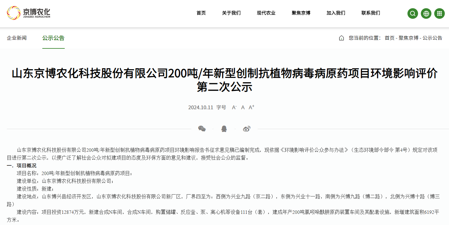 近期,山东京博农化科技股份有限公司多个项目在网站公示。