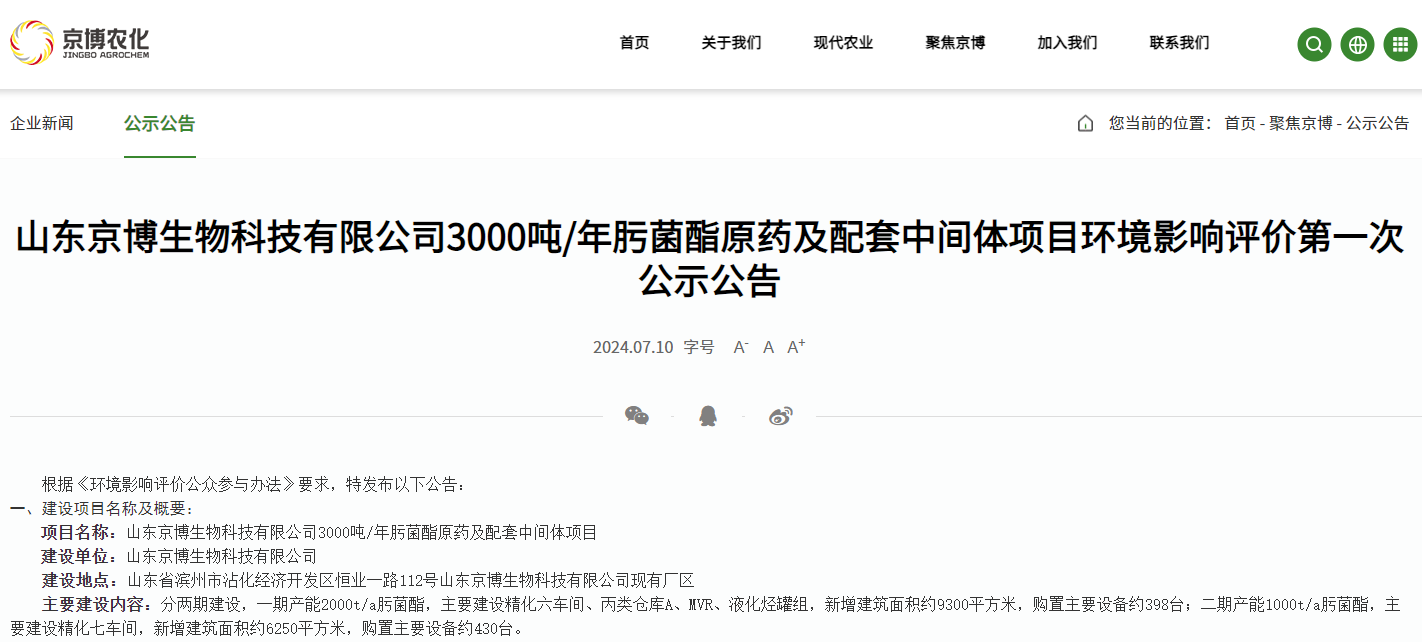 此前,京博农化子公司山东京博生物科技有限公司曾公示了2个项目。