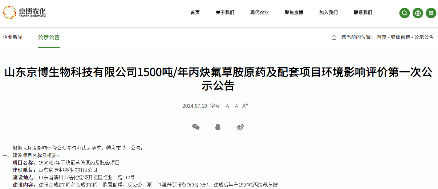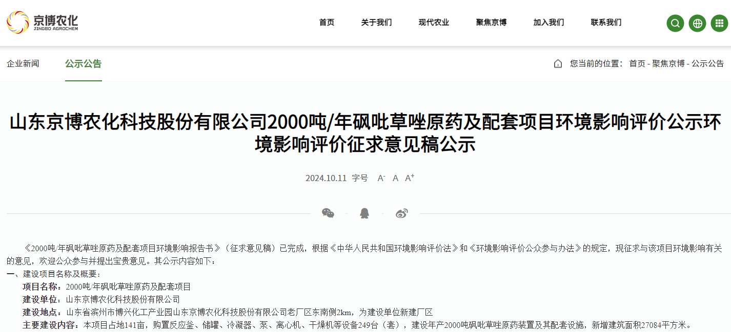 近期,山东京博农化科技股份有限公司多个项目在网站公示。