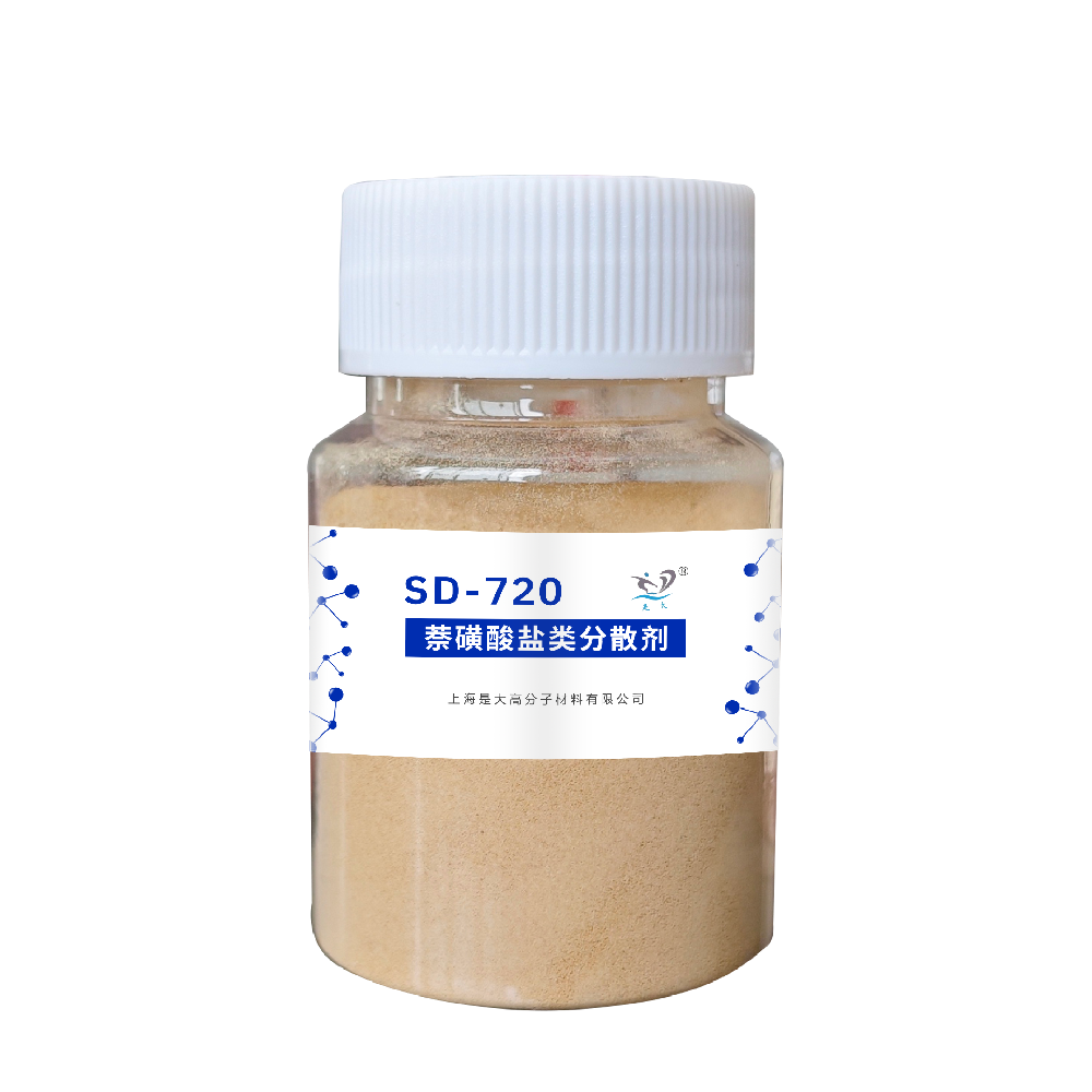 SD-720为黄褐色粉末,萘磺酸盐缩聚物,兼具润湿功能。可应用于大部分可湿性粉剂WP与水分散颗粒剂WG中。应用于WG中可具有良好的崩解性、分散性和悬浮稳定性,可与聚羧酸盐类分散剂等配合使用。